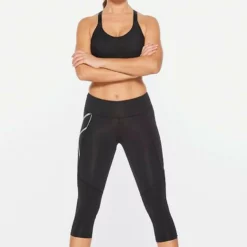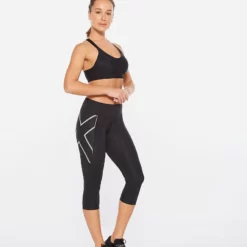 2XU Aero Vent Women’s Mid-Rise 3/4-Length Compression Tights – Black/Silver Reflective