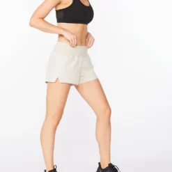 2XU – Aero Women’s 2-in-1 3in Shorts – Oatmeal/Oatmeal Reflective