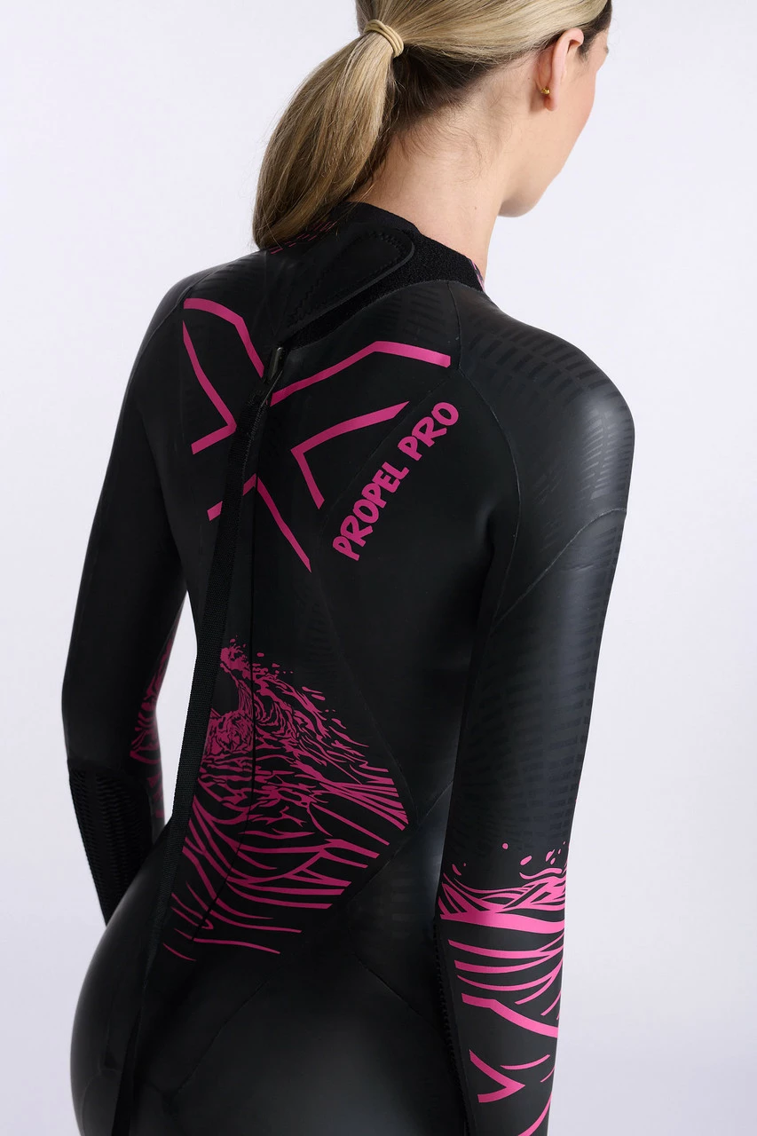 The Propel Pro Wetsuit features the latest in wetsuit technology and design innovation to ensure natural swimmers have ultimate flexibility and minimal water resistance for their best time yet.Â