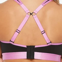 The 2XU Hi-Impact Bra is engineered to offer the ultimate in support and comfort during your most intense workouts. This version of this garment is in a high-contrast black with ultra pink trim, but we also offer it all black if you prefer something more neutral.