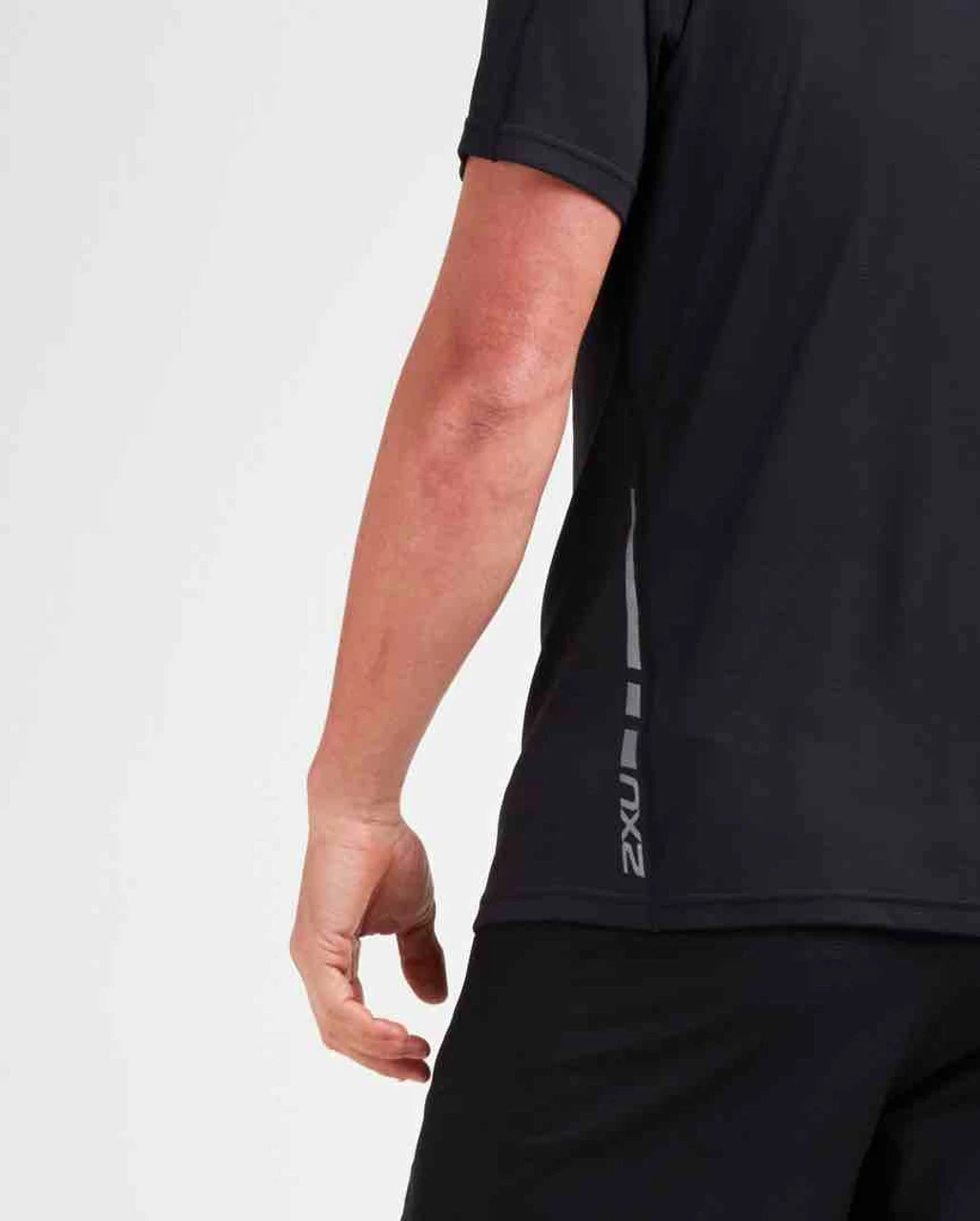 Stay cool and on track every run with the next generation Xvent Short Sleeve Tee. A moisture-wicking, double-knit fabric keeps you dry, while a polyester composition delivers rapid moisture dispersal. Along with breathable panels for targeted ventilation and a flexible, lightweight fabric, the XVENT goes above and beyond to help you perform in comfort.