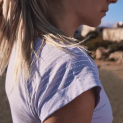 - High performance, lightweight running shirt offering an ultra-soft, seamless design with integrated ventilation panels and a feminine cut