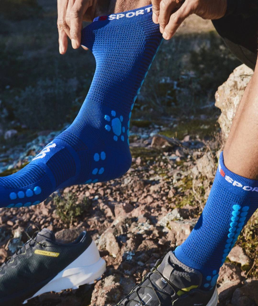 Compressport – Pro Racing Socks V4.0 Trail – Unisex – Sodalite/Fluo Blue