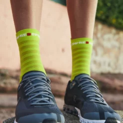 Compressport – Pro Racing Socks V4.0 Ultralight Run High – Unisex – Primerose/Fjord Blue