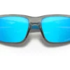 This frame colour option is mainly black, offset discreetly by grey accents on both arms. A dramatic contrast is provided by the Deep H2O pale blue lenses.