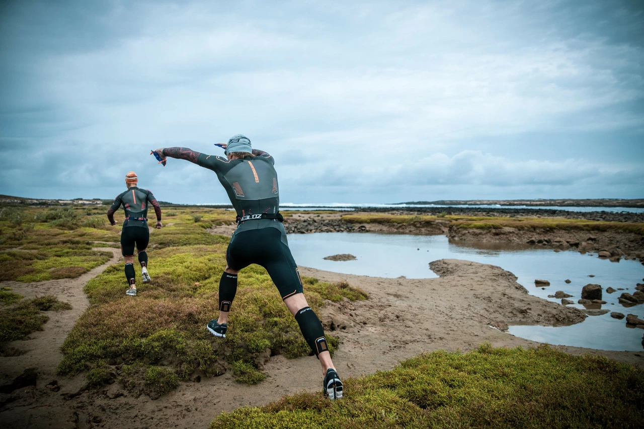 Designed expressly for SwimRun races, these calf sleeves provide the extra buoyancy lost when you wear a short-legged wetsuit and running shoes in competition. They’re also a great buoyancy aid for swimmers with heavy legs.